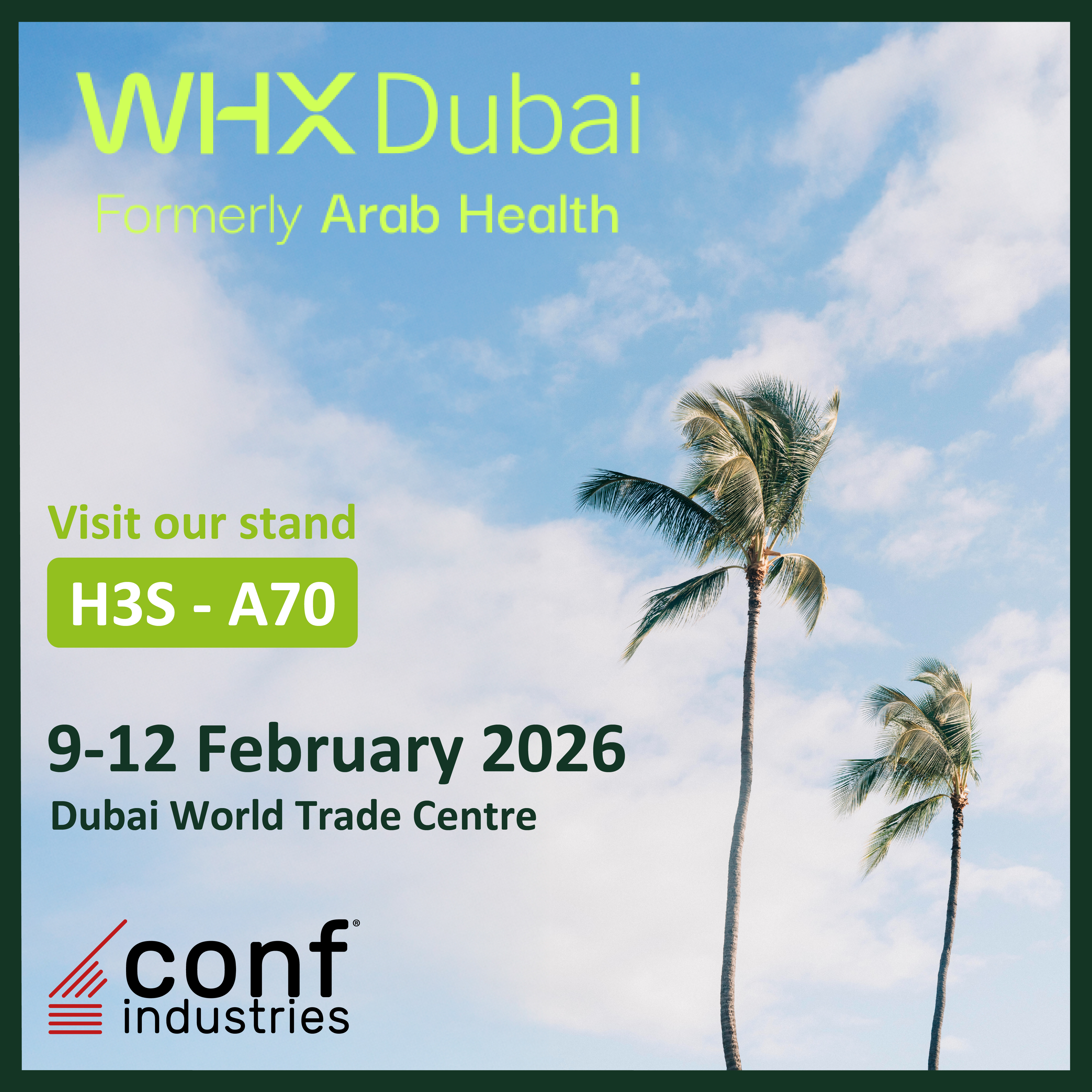 Conf Industries vi aspetta a WHX Dubai, dal 9 al 12 febbraio 2026. Venite a scoprire le nostre novità al padiglione H3S – stand A70!